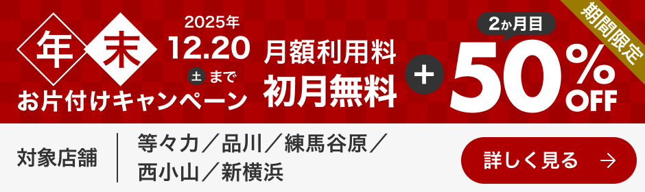 0.5畳~3畳のお部屋を数多くご用意しております。